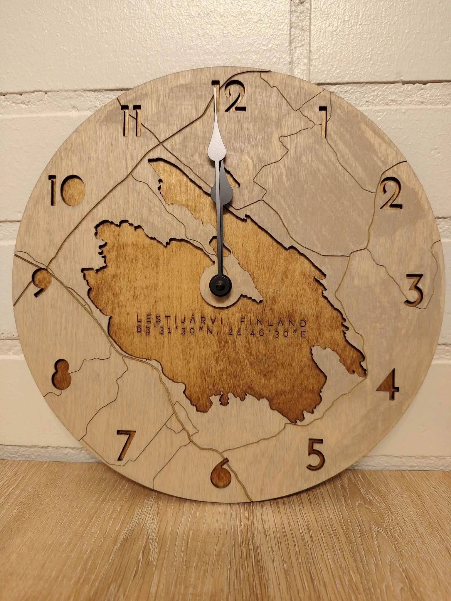 Ihastuttava seinäkello on valmistettu paikallisena käsityönä laadukkaasta vanerista. Tämä tyylikäs kello on täydellinen lisä jokaiseen kotiin, ja se sopii niin moderniin kuin perinteiseenkin sisustukseen. Ripaus tervantuoksua tuo muistoja menneiltä ajoilta.